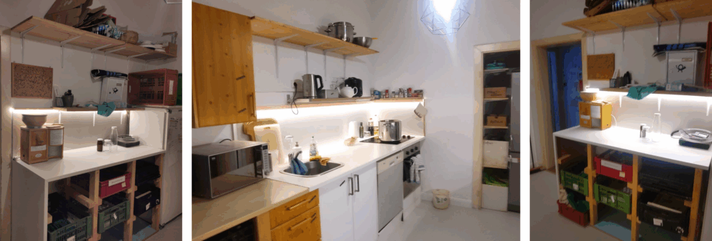 neu ausgemalt, neuer boden, neue arbeitsflächen, neue regale, mehr stauraum, mehr licht